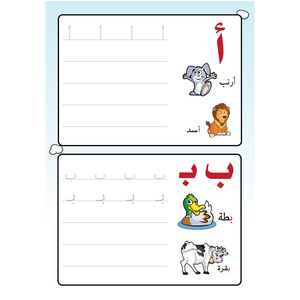n elegant plastic book that allows children to write and erase multiple times. It is printed with beautiful shapes and Arabic letters to help children learn how to write Arabic letters and develop language skills. The book comes in an elegant and distinctive shape and measures 24 cm x 34 cm.