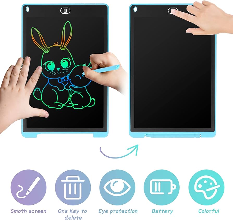 12 Inch Drawing Tablet Portable Reusable Drawing Board for Kids with Erase Button and Paint Brush